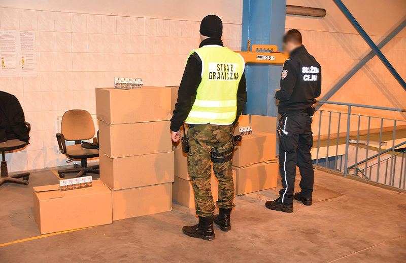 Koroszczyn. Funkcjonariusze Krajowej Administracji Skarbowej oraz Nadbużańskiego Oddziału Straży Granicznej nie dopuścili do nielegalnego wwozu na teren Unii Europejskiej blisko 8,5 tys. paczek papierosów.