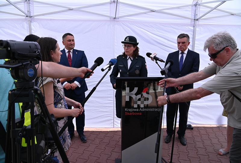 - W symbolicznym przekazaniu funkcjonariuszom KAS nowej broni do walki z przestępczością graniczną i przygraniczną uczestniczyła na granicy w Terespolu Sekretarz Stanu, Szef Krajowej Administracji Skarbowej Magdalena Rzeczkowska.