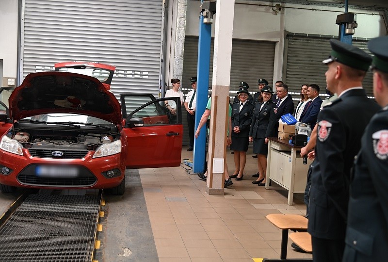 Po uroczystym oddaniu do użytku nowego sprzętu skanującego goście mieli okazję wizytować budynek kontroli szczegółowej, gdzie obejrzeli m.in. pokaz kontroli samochodu z wykorzystaniem psa służbowego KAS oraz przykłady ciekawych ujawnień. Ostatnim punktem programu było zwiedzanie drogowego przejścia granicznego w Terespolu.