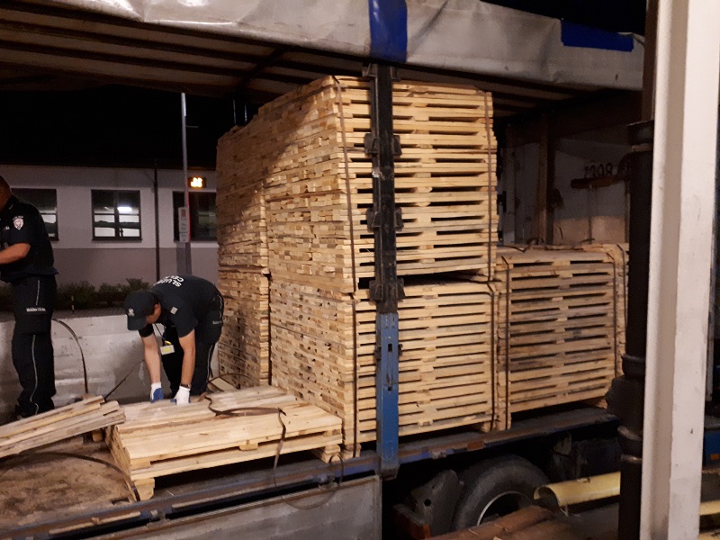 W pierwszym przypadku towarem oficjalnie zgłoszonym do odprawy celnej były palety. Obraz z prześwietlania pojazdu na skanerze wskazywał jednak, że nie jest to jedyny towar, jaki znajduje się w naczepie samochodu ciężarowego jadącego z Ukrainy do Polski.
