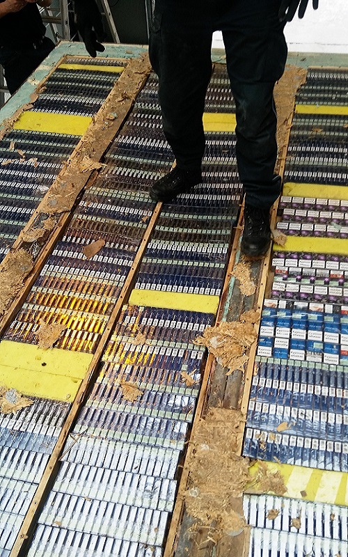 Po skierowaniu pojazdu do rozładunku funkcjonariusze celno-skarbowi przez kilka godzin wydobywali ze specjalnie wydrążonych desek papierosy z ukraińskimi znakami akcyzy. W sumie przemytnicy próbowali wwieźć w ten sposób na teren Unii Europejskiej 15 763 paczki papierosów. Rynkowa wartość nielegalnego towaru wynosi ponad 215 tys. złotych.