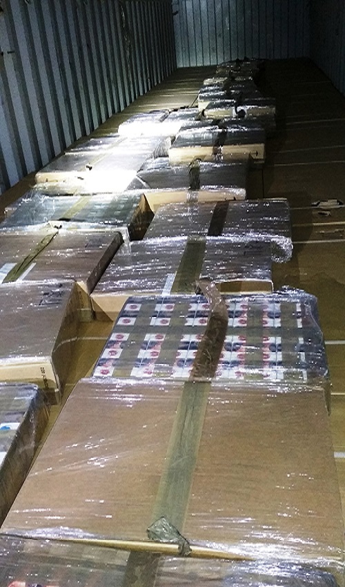 Pudła z papierosami ukryte były w jednym z kontenerów, wśród towarów legalnie wjeżdżających do Unii Europejskiej.
