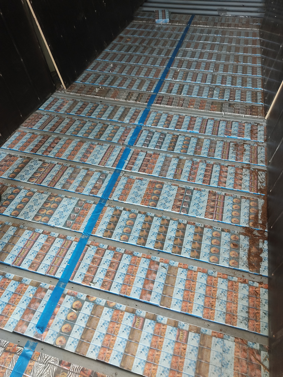 Nielegalny towar w postaci papierosów bez polskich znaków akcyzy ukryty był w każdym kontenerze w jednakowy sposób …. w specjalnie przerobionej podłodze. W każdym znajdowało się kilkadziesiąt tysięcy paczek.