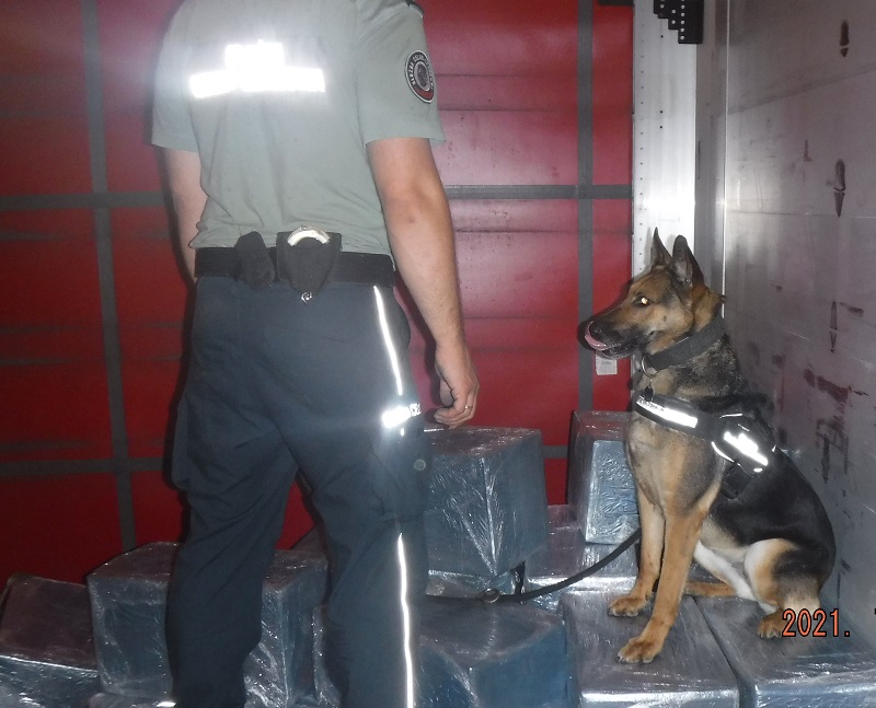 Kontrola była wynikiem wytypowania pojazdu przez kierownika zmiany, który po przeprowadzeniu analizy zlecił szczegółową rewizję. Jego podejrzenia potwierdziło zachowanie naszego czworonożnego funkcjonariusza, które wskazywało, że w naczepie pojazdu jest nie tylko zadeklarowany ładunek.