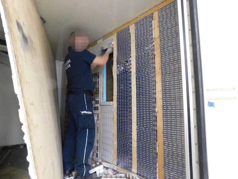 Funkcjonariusze Oddziału Celnego w Sławatyczach udaremnili próbę przemytu ponad 11 tysięcy paczek papierosów. Towarem niemal „wytapetowane" były ściany samochodu ciężarowego typu chłodnia. Na granicy w Sławatyczach jest to w tym roku największe ujawnienie nielegalnych wyrobów tytoniowych.
