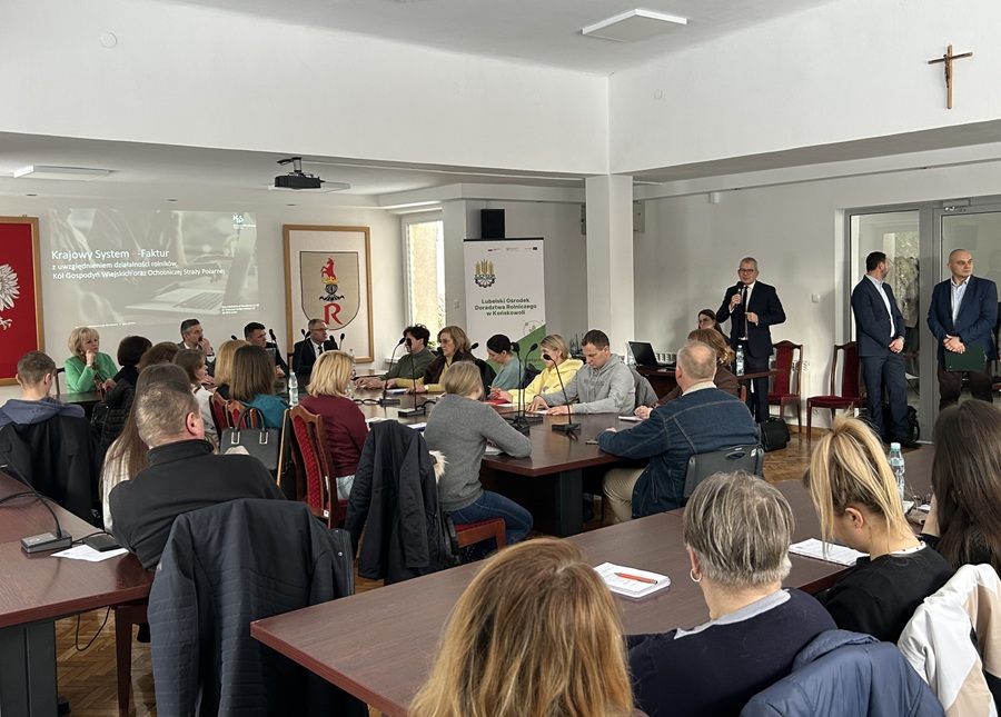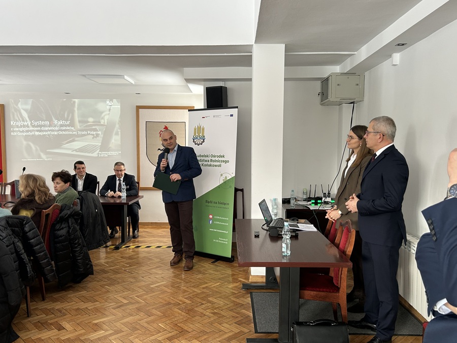 W Urzędzie Miejskim w Rykach odbyło się szkolenie poświęcone funkcjonowaniu Krajowego Systemu e-Faktur. Wydarzenie zostało zorganizowane we współpracy z Powiatowym Zespołem Doradztwa Rolniczego w Rykach i skierowane było przede wszystkim do rolników, przedstawicieli Kół Gospodyń Wiejskich oraz jednostek Ochotniczych Straży Pożarnych.