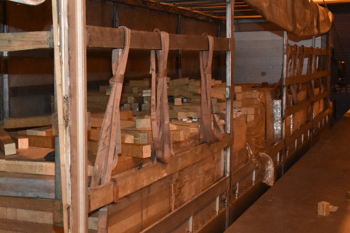 Funkcjonariusze Oddziału Celnego w Koroszczynie poddali skanowaniu urządzeniem RTG jeden z zestawów ciężarowych wjeżdżający z Białorusi. Zgodnie ze zgłoszeniem ładunek brykietów z trocin jechał do jednej z firm w województwie mazowieckim.