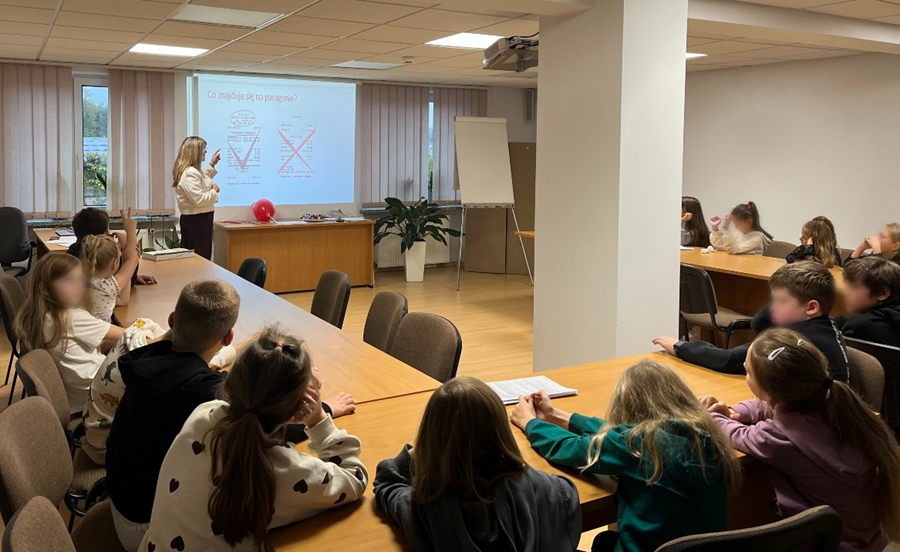 Pani Naczelnik przywitała uczniów i zaprosiła ich do sali konferencyjnej, gdzie pracownicy urzędu wyjaśnili dzieciom, czym są podatki, po co się je płaci i jak z nich korzysta państwo. Pokazali też, jak wygląda praca w urzędzie i czym zajmują się jego pracownicy.