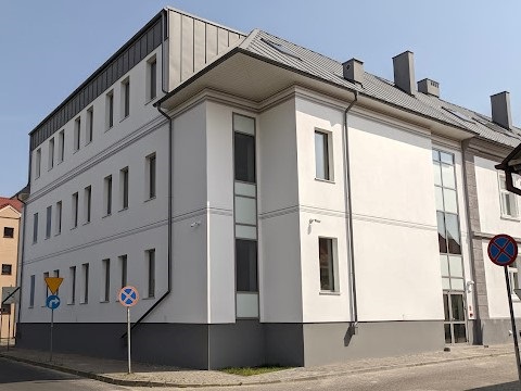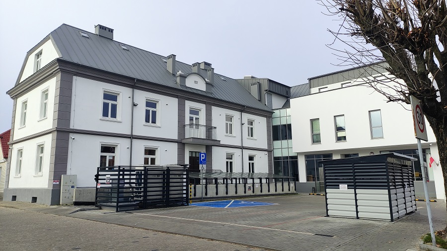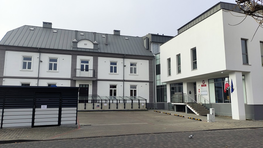 Budynek jest przystosowany do obsługi osób niepełnosprawnych. Przy wejściu do budynku znajduje się dźwig osobowy dla osób z dysfunkcją narządów ruchu poruszających się na wózku inwalidzkim, który umożliwia przemieszczenie się do poziomu parteru budynku. Dźwig obsługi-wany jest przez pracowników urzędu, po wezwaniu dzwonnikiem umieszczonym na ścianie bu-dynku, obok urządzenia. W przypadku konieczności przemieszczenia się poza salę obsługi znajdującą się na parterze budynku, możliwe jest skorzystanie z windy osobowej z automatycz-nie rozsuwanymi drzwiami, zapewniającej dostęp na wyższe kondygnacje budynku. W kabinie windy wszystkie przyciski wyposażone są w grafikę Braille'a. Toaleta na parterze budynku przy-stosowana jest dla osób niepełnosprawnych, została wyposażona w uchwyty i inne urządzenia wymagane w takich toaletach ułatwiające korzystanie z nich tym osobom. Parking urzędu - po-siada miejsce przeznaczone dla osób niepełnosprawnych.